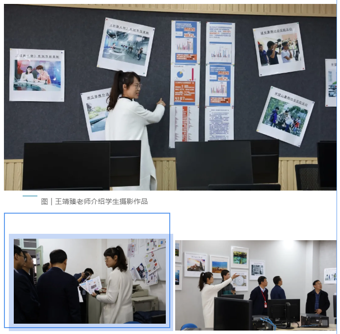 现代传播实验中心的王婧臻老师带领大家观看了学生摄影作品。介绍了明升M88 历史、专业架构以及教学投资。明升M88 组建于2003年,设立新闻学、广播电视学、新媒体等六个专业,总投资3000万元。