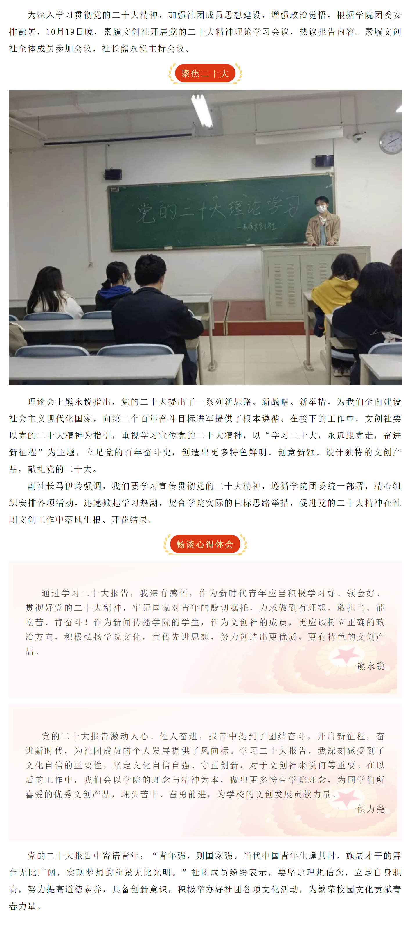 上一篇:党的二十大精神·系列理论学习(十)| 演讲朗诵社召开理论学习会专题学习党的二十大报告