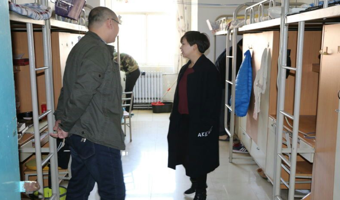 王亮老师在宿管处登记