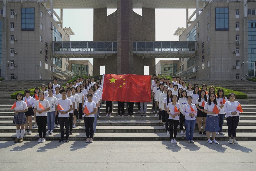 “我和国旗合个影”、“我与祖国共奋进”主题朗诵、国旗下演讲、爱国主义主题团日、观看爱国主义主题电影、举办爱国主义讲座、读书会……9月以来,新传院组织师生开展了丰富多样的庆祝新中国成立70周年系列教育活动。师生们在国旗下、在天平楼前、在教室里、在何微雕像旁以实际行动,向祖国献礼,向祖国告白。