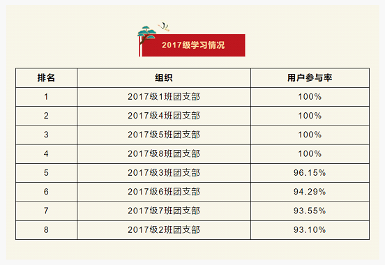 在上一期“青年大学习”网上主题团课的学习中,2017级1班、4班、5班、8班团支部位居榜首。