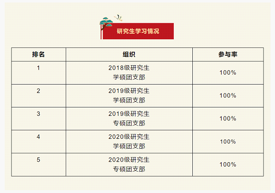 在上一期“青年大学习”网上主题团课的学习中,研究生所有团支部全部完成!
