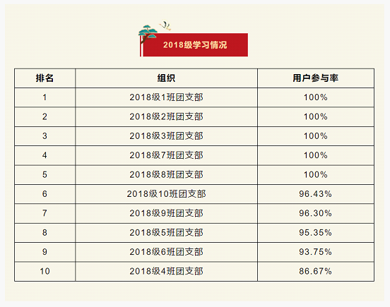 在上一期“青年大学习”网上主题团课的学习中,2018级1班、2班、3班、7班、8班团支部位居榜首。