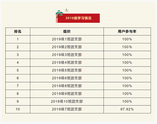 在上一期“青年大学习”网上主题团课的学习中,2019级1、2、3、4、5、6、8、9、10班团支部位居榜首。
