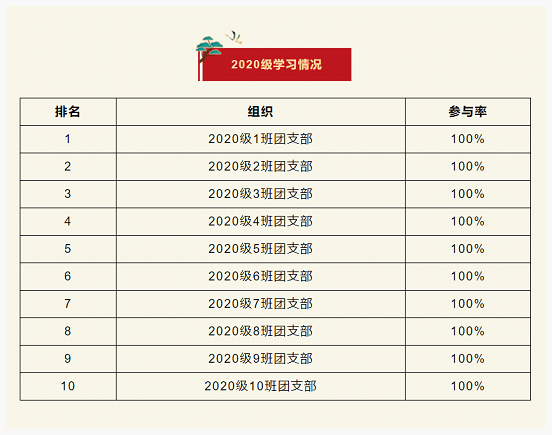 在上一期“青年大学习”网上主题团课的学习中,2020级所有团支部全部完成!