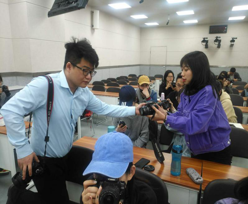 提供的摄像器材,老师将同学们以两人为单位分为一组,先让同学们亲身感受摄像器材的性能,熟悉摄像器材的基本操作,然后戴阳老师针对手中的摄像器材进行了详细的理论讲解,让同学们了解了摄像器材的基本构造,通用性能,快捷键等基本知识,教授同学们理论知识,为接下来的实践操作打下了良好的基础。