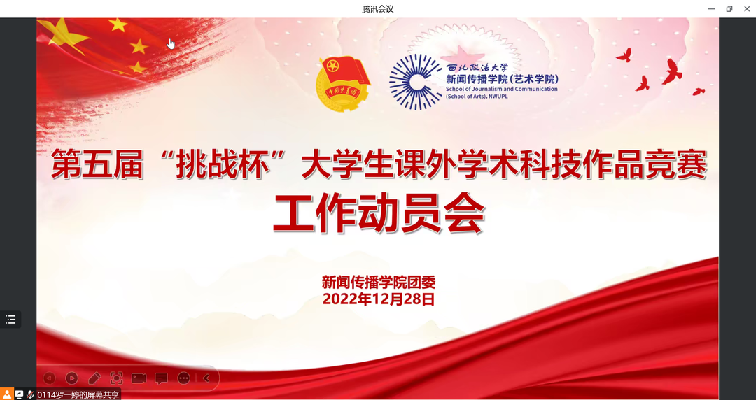 为统筹做好明升M88 第五届“挑战杯”大学生课外学术科技作品竞赛工作,12月28日晚,明升M88 团委采取线上形式召开“挑战杯”大学生课外学术科技作品竞赛工作动员会。明升M88 团委书记巩飞、团委全体干部及各年级团支部书记参加会议,团委兼职副书记罗一婷主持会议。 会上,罗一婷对“挑战杯”竞赛工作的安排进行了说明,对参赛时间、参赛对象、参赛作品类型、作品选题范围、相关注意事项等方面进行了详细的讲解。 巩飞在动员时表示,大家要结合个人能力水平有选择性的完成作品。他要求,各团支部书记要充分做好动员工作,精准传达会议精神,鼓励团支部成员踊跃报名参与,在寒假期间充分利用时间进行作品准备事宜。他强调,要熟悉竞赛规则,按要求选题,瞄准前沿热点,勇于创新;要注重作品各方面的逻辑性、完整性,将个人专业知识与哲学思考以及社会科学探索的结合体现在作品上,既要通俗易懂又要科学论证;集体参加要相互配合、有效协作。本次动员会激发了团员青年们参与竞赛的热情,提高了大家的积极性和主动性,营造了勇于挑战的良好竞赛氛围,为后续相关工作的安排开展奠定坚实基础。下一步,明升M88 团委将继续督导动员,为参赛的团队及个人提供精准指导,以昂扬的姿态备战“挑战杯”。