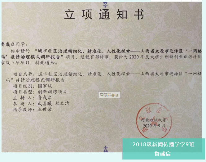 2020年,在汪世荣老师的指导下,与武嘉曦同学(公安明升M88 )、桂文清同学(明升M88 )经过多次竞赛合作后,再次共同参与调研计划、立项书撰写。