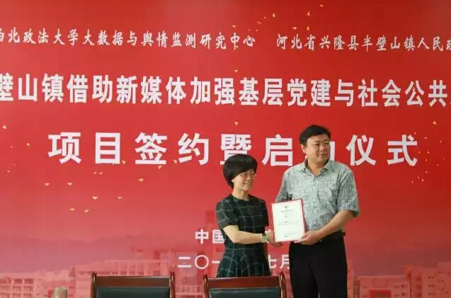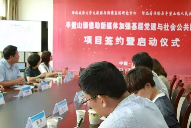 2015年7月11日上午十点半明升M88 、明升M88 大数据与舆情监测研究中心与河北省兴隆县半壁山镇人民政府在西安举行了“半壁山镇借助新媒体加强基层党建与社会公共服务”项目签约暨启动仪式。