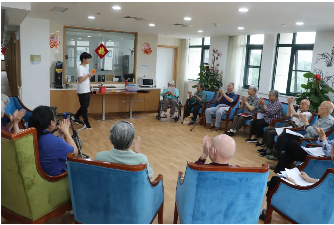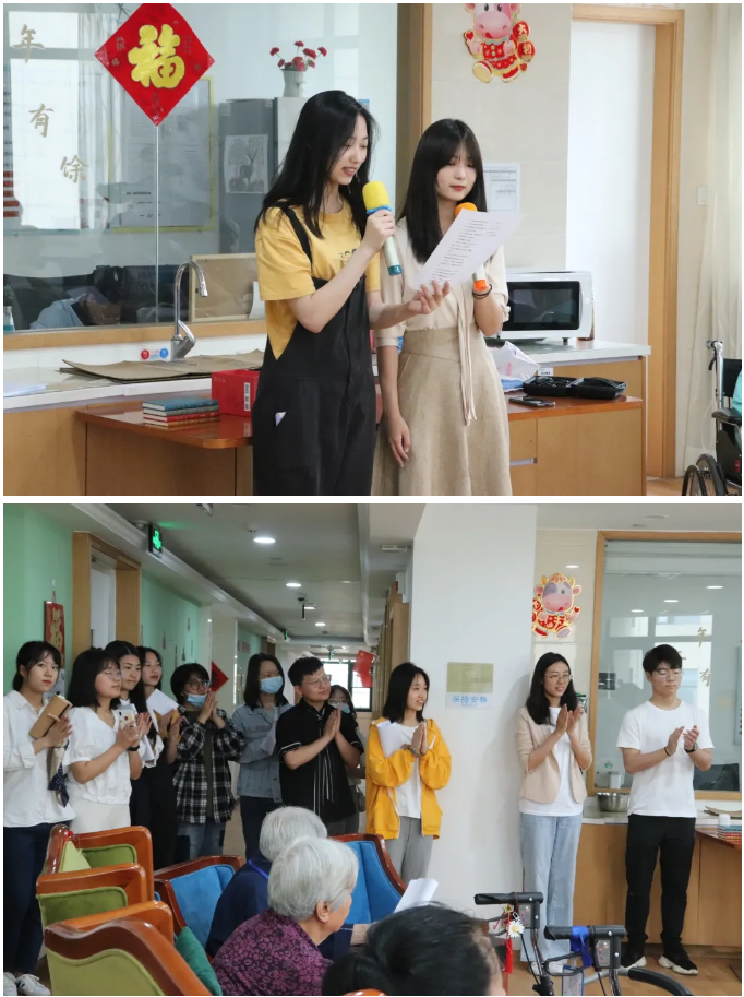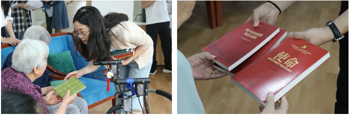 学生们选取了毛泽东、鲁迅等人的红色经典篇目,用朗读的方式,为老年人送去温暖和关爱,本次活动学生们也向老年护理院的老人们赠送了红色书籍。