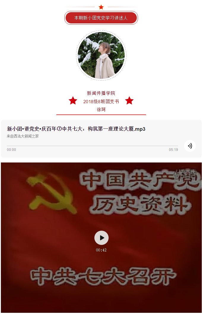 为迎接中国共产党百年华诞,扎实推进党史学习教育,教育引导明升M88 青年学生学史明理、学史增信、学史崇德、学史力行,以青春激昂、舍我其谁的奋斗姿态向建党百年献礼。明升M88 团委启动“新小团•讲党史•庆百年”主题线上推送活动,由老师同学共同讲述中共一大到中共十九大的故事,用声音重温百年记忆,用故事回首百年征程。让我们一起聆听,在党史学习教育中汲取奋进力量!