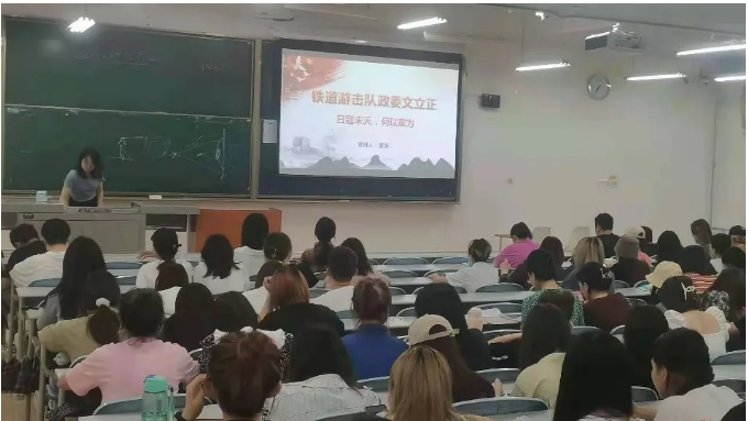 第一位进行宣讲的同学是马克思主义明升M88 研究生董溪,宣讲的主题是“铁道游击队政委文立正日寇未灭,何以家为”。在正式宣讲之前,她先带领大家观看了经典影视《铁道游击队》的片段,由此引入了本次宣讲的主人公--文立正。董溪学姐将文立正政委的一生分为“投身革命”、“施展才干”、“彰显担当”、“英雄长存”四个阶段,讲述了文立正书记传奇的一生。