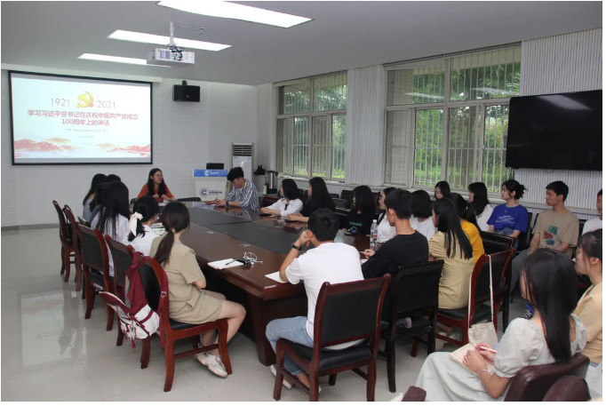 7月2日中午,明升M88 学生党支部组织毕业生党员集中学习习近平总书记在庆祝中国共产党成立100周年大会上的讲话,会议由学生党支部书记刘璇老师主持。会上,曹向涛等八名毕业生党员结合自身实际畅谈心得体会。