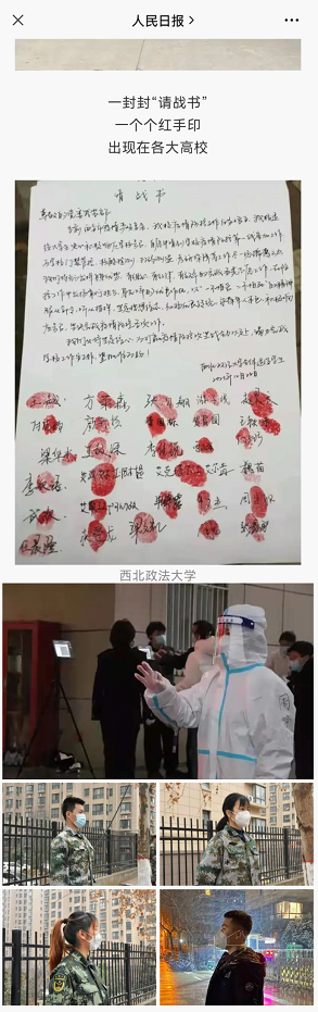 近期,西安疫情防控形势严峻,明升M88 师生在做好自身防疫同时,紧密配合、不畏艰险,齐心抗疫。明升M88 成立师生志愿服务先锋队、团员青年突击队、派出志愿者,“逆行”投身抗疫一线,以实际行动展现西法大人的担当作为,为广大师生守牢疫情防控安全线。