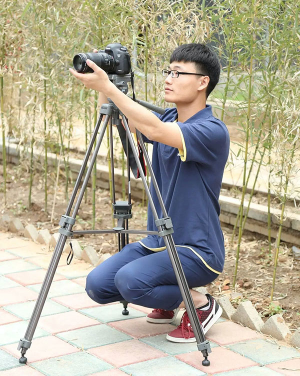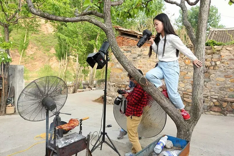 摄影小学妹拼了,身高不够树来凑