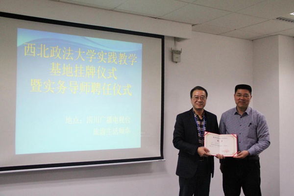 教务处副处长李永宁为四川省广播电视新闻与传播研究所现代传播研究室主任刘勇峰颁发实务导师聘书)