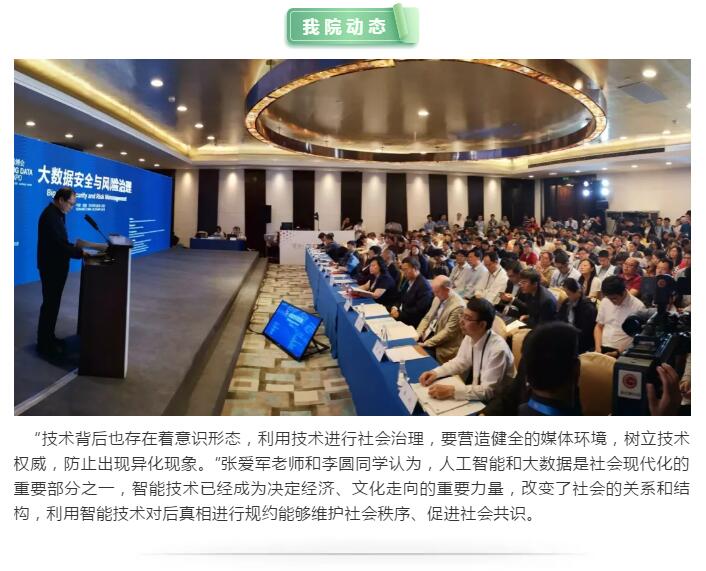 5月25日,大数据安全与风险治理论坛在贵阳国际生态会议中心举办,明升M88 张爱军老师和李圆同学受邀参会,论文《人工智能时代后真相现象的消解、再塑及矫治》在《中国行政管理》辑集出版。