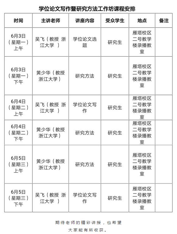 本次学位论文写作暨研究方法工作坊时间为6月3日至5日,由吴飞老师和黄少华老师主讲。