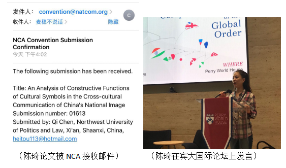 两位老师非常珍惜在外学习的机会,积极参与专业相关的国际学术会议。陈琦的英文学术论文“The Analysis of Constructive Function of Cultural Symbols in the Cross-Cultural of Communication of China’s National Image”被第104届“国际传播学会”接收,并于2018年10月受邀参加了在盐湖城举办的高峰论坛。