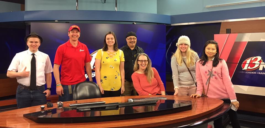 郭淼在福特海斯大学访学期间,也深度参与了该校的学生电视台“TIGER VOICE”节目策划和制作过程。跟随数据新闻报道课程的师生一起先后参观了KCWIFT|FOX4NEWS电视台、WIBW(Radio)广播中心、WIBWTV,并且参加了堪萨斯州每年一度的KAB颁奖会议。