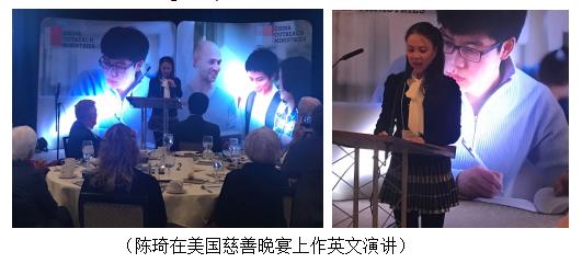 2018年9月,参加了宾夕法尼亚大学的国际论坛并在分论坛作了发言。2018年10月,受美国基督教慈善基金会邀请,代表中国学者在慈善晚宴上作了全英文演讲“Follow the light in your heart”,受到美方基金会的好评。