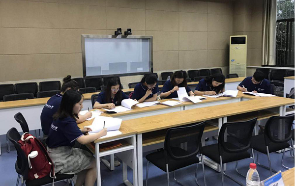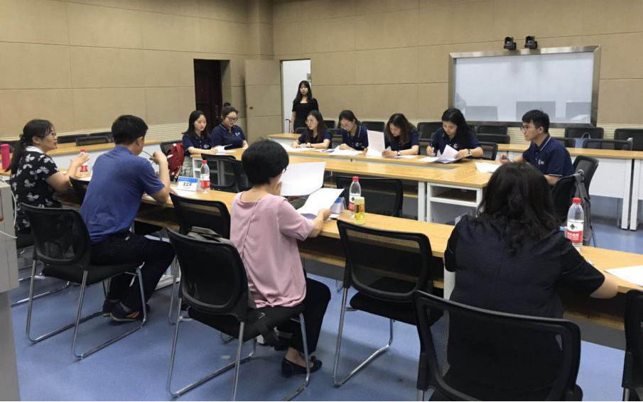 面试创新地采用了“无领导小组面试”,同学们首先轮流进行英语自我介绍,然后就专业题目进行观点表达和讨论交流。起初,大家稍显拘谨谦逊,但不久便适应了这种考核方式,放下包袱畅所欲言,围绕主题展开了热烈讨论。营员们的流利表达和出色表现赢得了考官们赞许的目光。