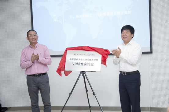 在签约仪式后,与会嘉宾应邀体验了VR虚拟现实设备,杨宗科听取了VR虚拟现实设备的有关情况汇报,他对未来校企合作的具体方式和内容充满期待。“这次的合作是一个非常好的项目。”杨宗科表示,能够和这样的媒介技术领军企业进行战略合作,对于高校学生的实践能力提升很有帮助,与实践的紧密结合也会对学生未来走上社会之后提高适应能力带来很大帮助。