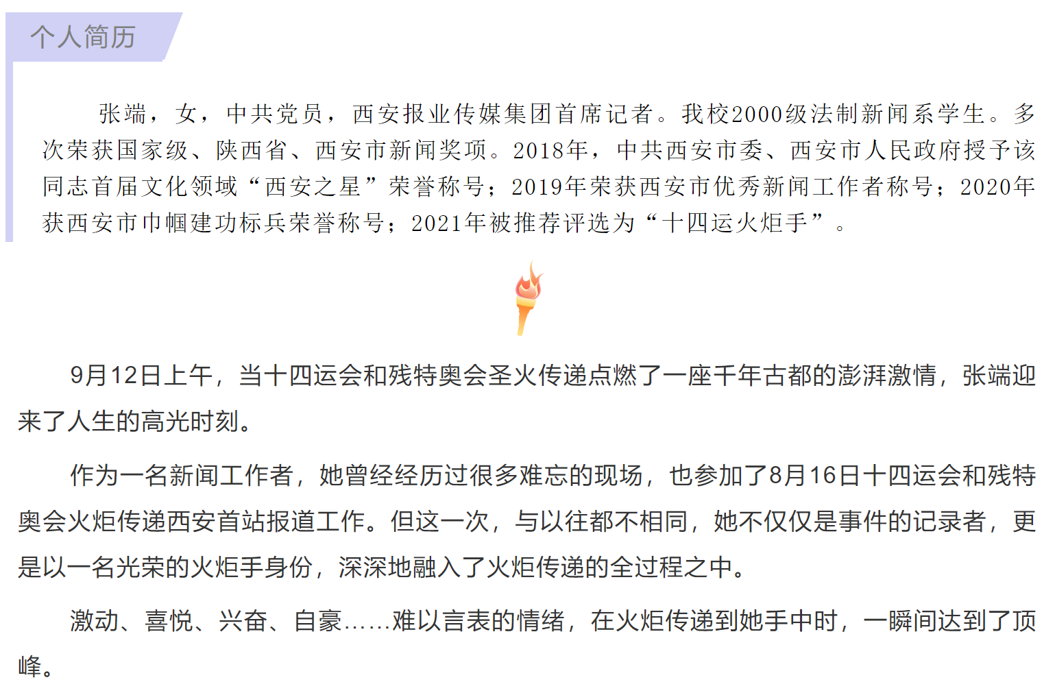 从9月9日集结,到9月12日传递,短短的三天时间,张端收获了一段弥足珍贵的经历,也在自己的职业生涯中,开启了一段与众不同的记录。