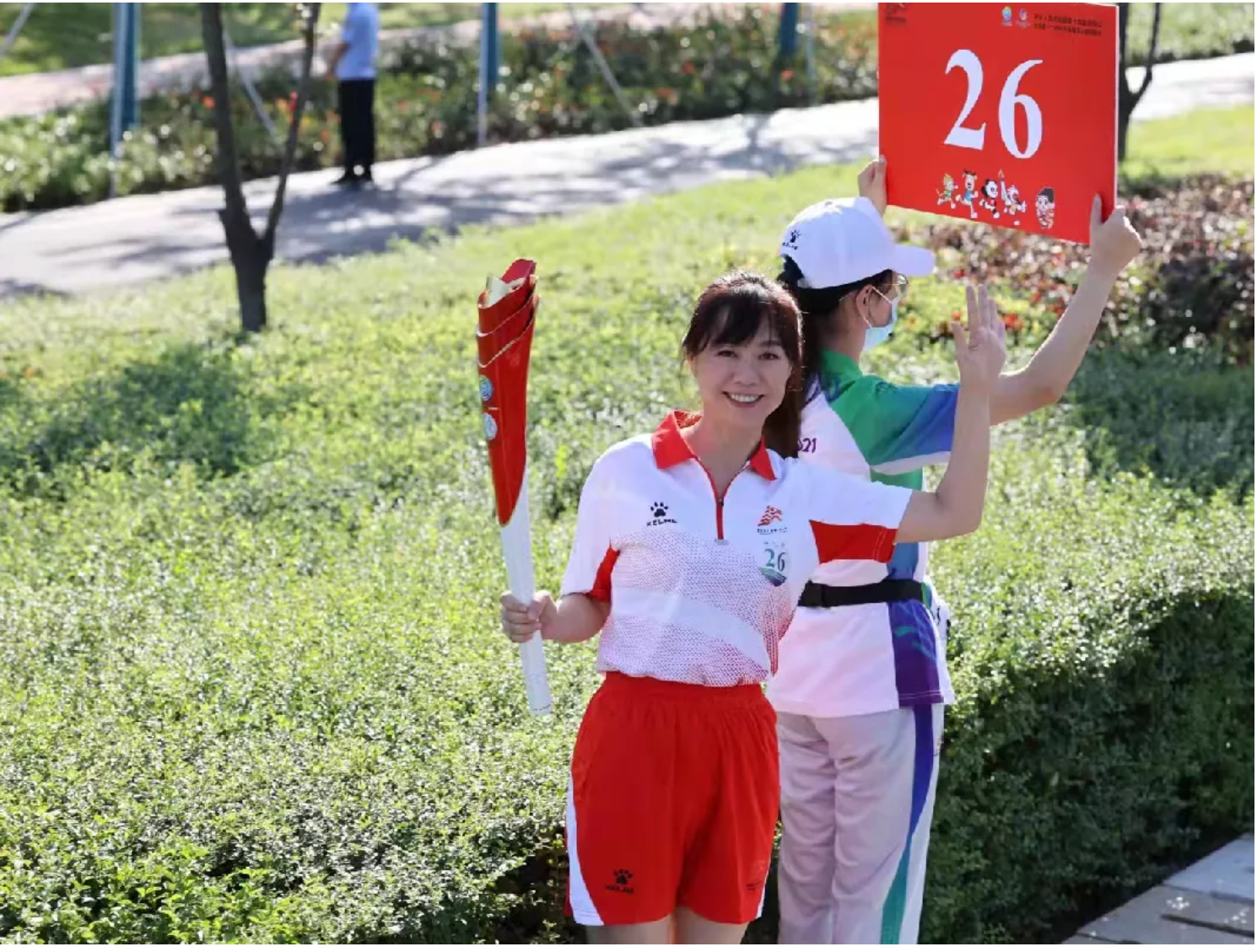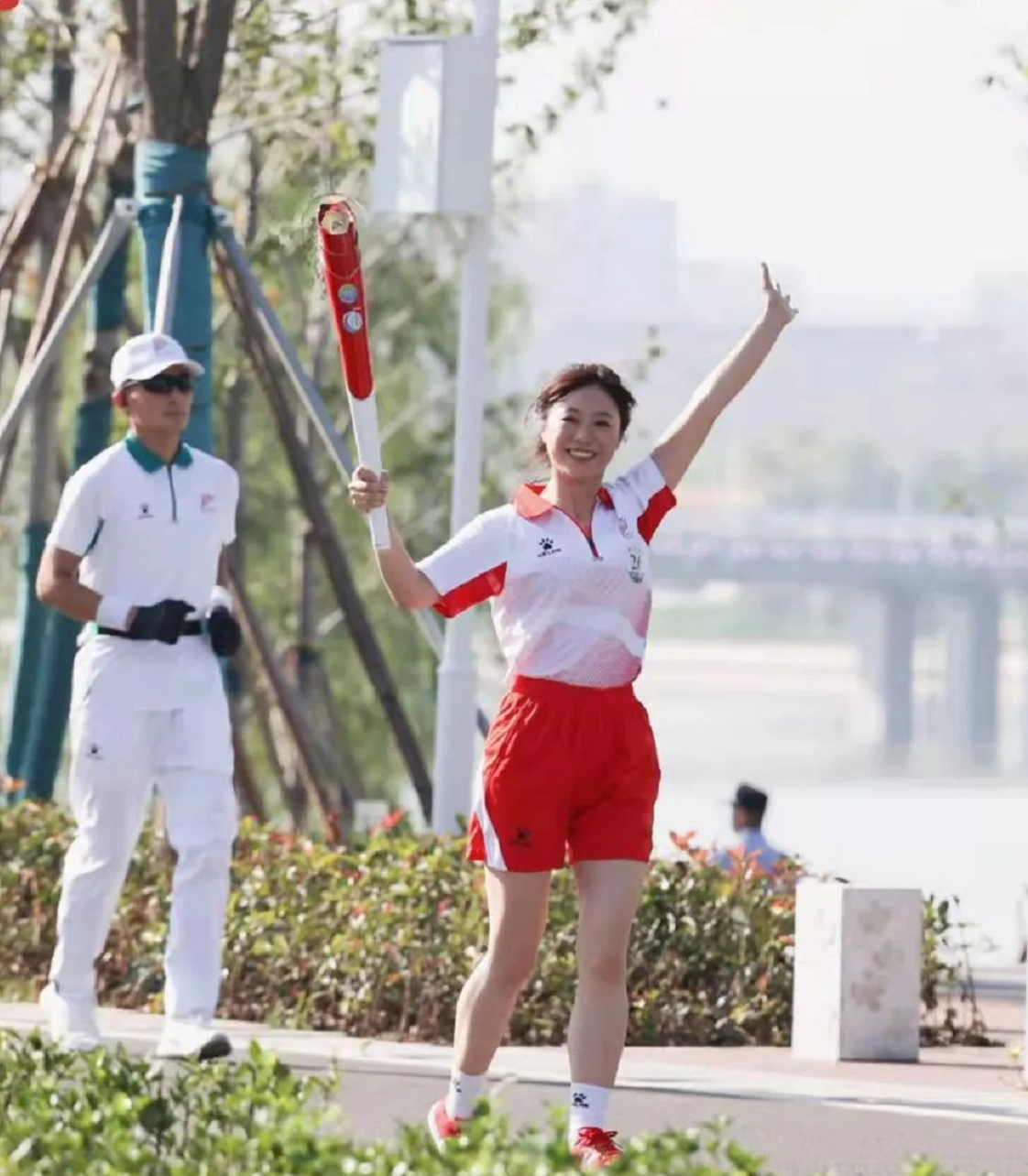 “我接棒的位置大概在灞河东岸滨水景观带,一条蜿蜒曲折的慢行道——“三河一山”绿道与我相伴。放眼望去,满目苍翠,感觉手中的圣火与粼粼的灞河、沿途的绿树相映成趣,奔跑在一幅“水在城中、城在水中、水城共融”的生态画卷当中。"张端满怀激动地说到。
